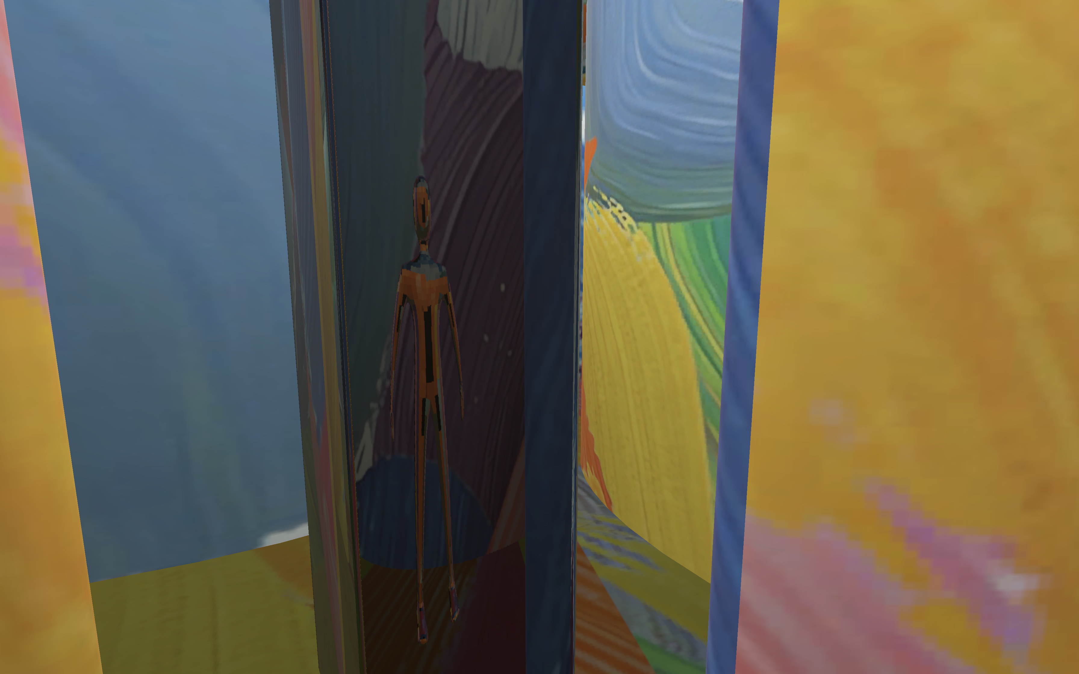 Reflective, originated from an Immersive VR project, is a computational art installation on self-identity reflection. It invites viewers to peer into a wry maze room covered in moving paint strokes and discovers their own bodies covered in mirrors that allegorically depicts one’s mental state.